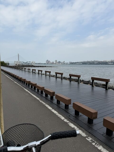 沿著海邊騎腳踏車的途中,真的很放鬆。